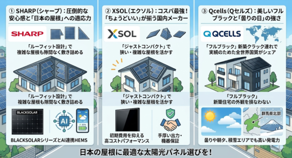 2026年現在、プロが自信を持っておすすめする3大メーカー(シャープ・エクソル・Qセルズ)の特徴を分かりやすく解説します!