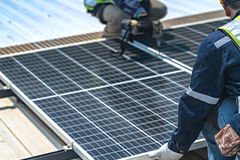 屋根の補強工事や設置用架台工事(必要に応じて)、ソーラーパネル、周辺機器の設置、配線工事などを行ないます。